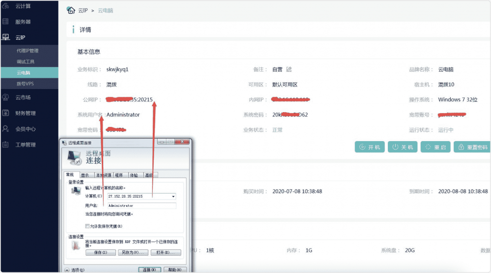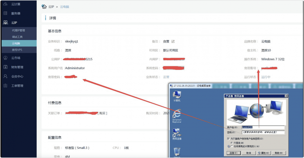 第八步,遠(yuǎn)程進(jìn)入到VPS桌面后,點(diǎn)擊桌面的 寬帶連接,會(huì)彈出一個(gè)對(duì)話框,如下圖所示 輸入 ADSL賬號(hào)和ADSL密碼(輸入位置如下圖所示),點(diǎn)擊 連接 按鈕進(jìn)行撥號(hào)