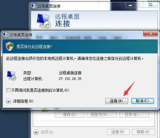 第五步,填寫完信息后,點(diǎn)擊 連接按鈕,點(diǎn)擊連接按鈕后會(huì)彈出一個(gè)確認(rèn)對(duì)話框,點(diǎn)擊 連接 按鈕