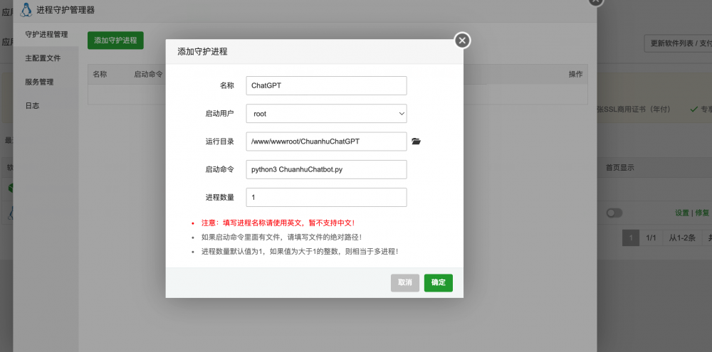 12、安裝完成后,點擊進程守護管理器右邊的設置,然后在彈出的窗口中,點擊添加守護進程