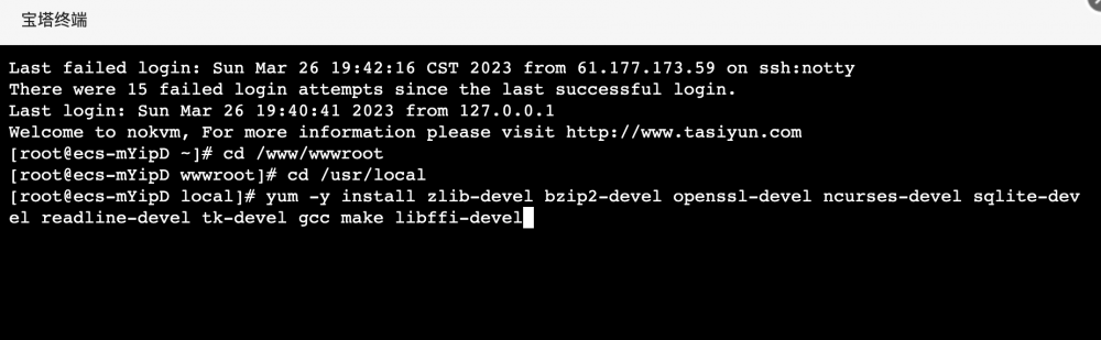 yum -y install zlib-devel bzip2-devel openssl-devel ncurses-devel sqlite-devel readline-devel tk-devel gcc make libffi-devel