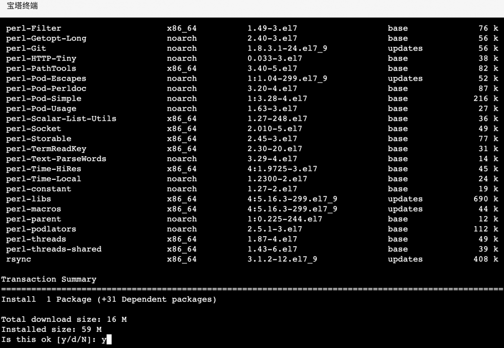 在下載過程中,會有個提示,意思是確認是否安裝,這里輸入y,然后回車即可