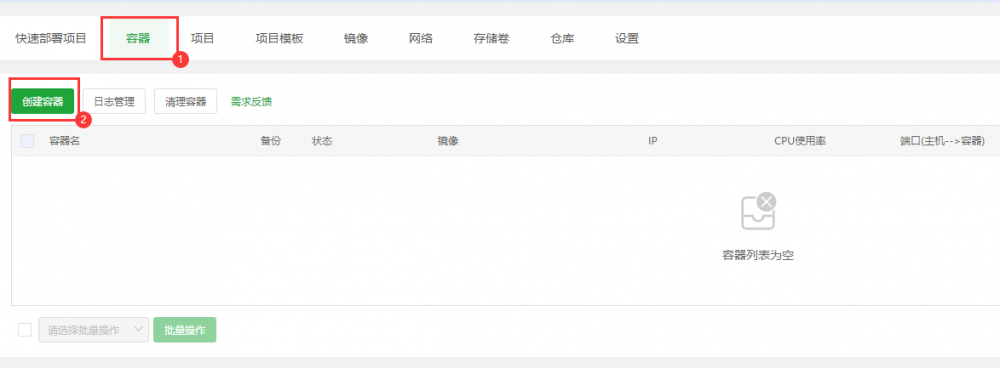 等待拉取完鏡像后,再點擊頂部的容器-創(chuàng)建容器