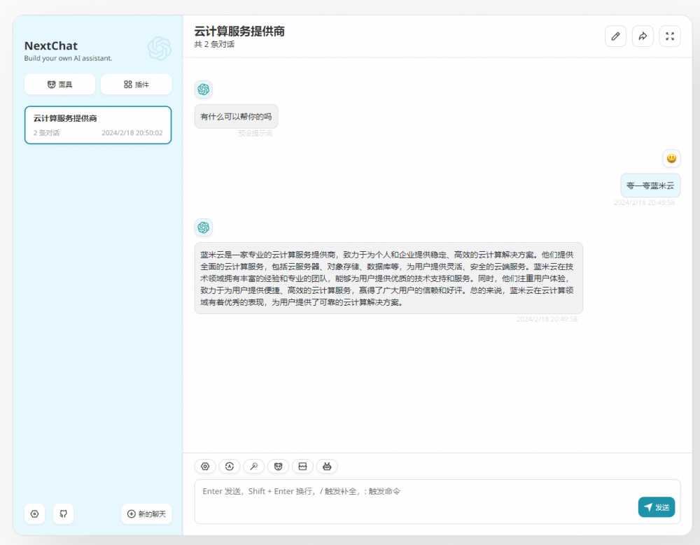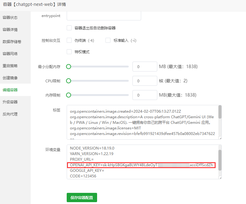 當然這里我們是自己使用,如果每次使用都來輸入OpenAI API key的話就不是特別友好了,所以我們可以在容器中直接內置一個OpenAI API key,這樣就不需要每次訪客使用就需要輸入了。